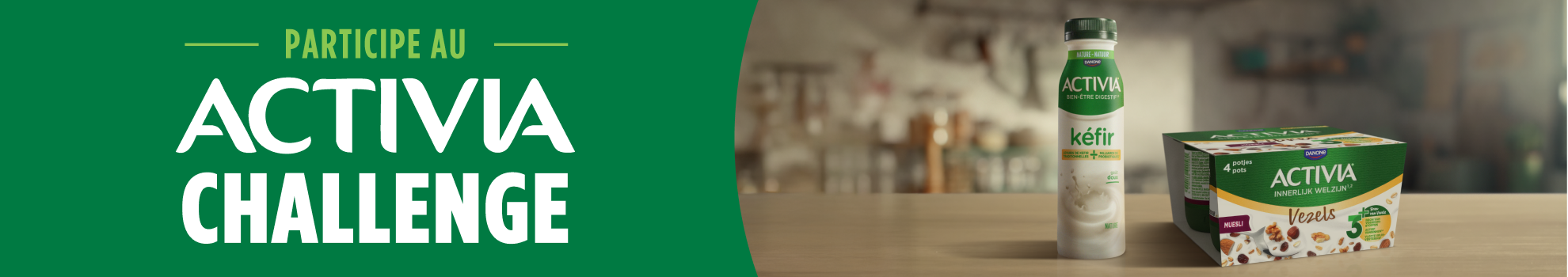 Activia va t’aider à adopter et à maintenir ces bonnes habitudes plus facilement. Participe dès maintenant à l’Activia Challenge !