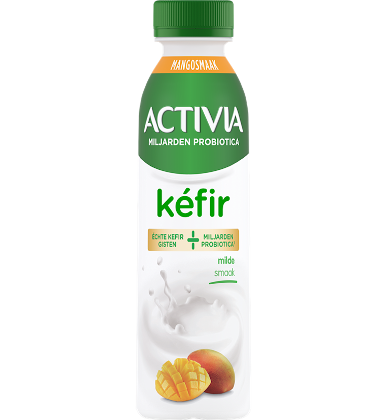Activia kefir Mango smaak, een kefirdrank met een milde smaak en romige textuur om je te helpen elke dag goed voor je spijsvertering te zorgen (1,2). Onze kefir is een unieke combinatie van 16 actieve culturen (3), waaronder echte kefir gist, en Activia probiotica (1). Geniet ervan bij het ontbijt of op elk moment van de dag.